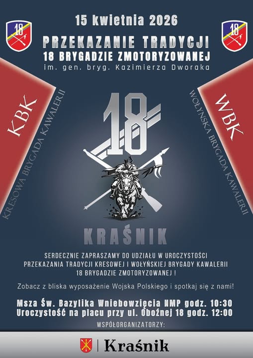 18 Brygadzie Zmotoryzowanej. 10:30 – Msza Święta w Bazylika WNMP przy ul. Klasztornej 3. 12:00 – Główna część uroczystości na placu przy ul. Oboźnej 18.